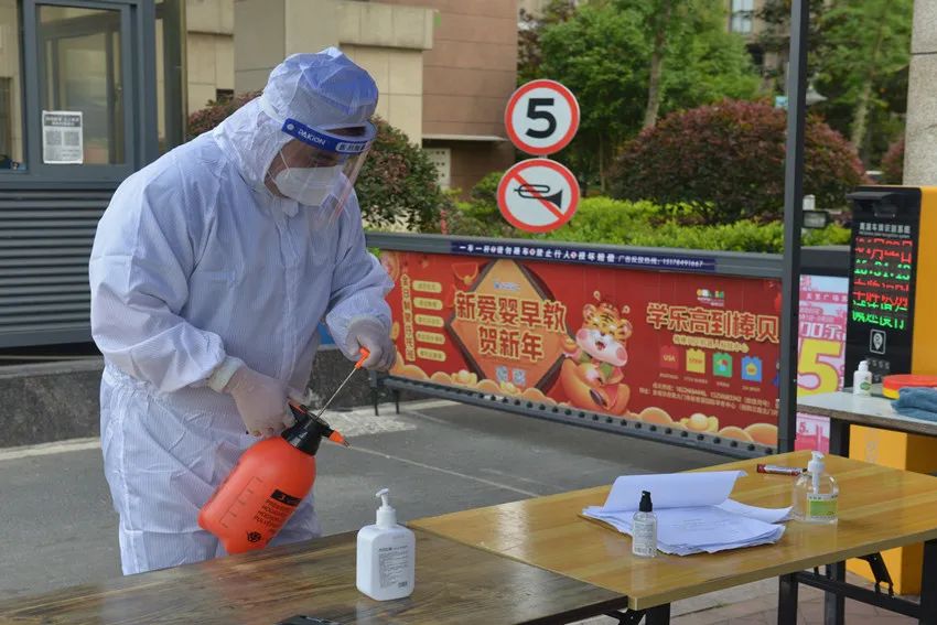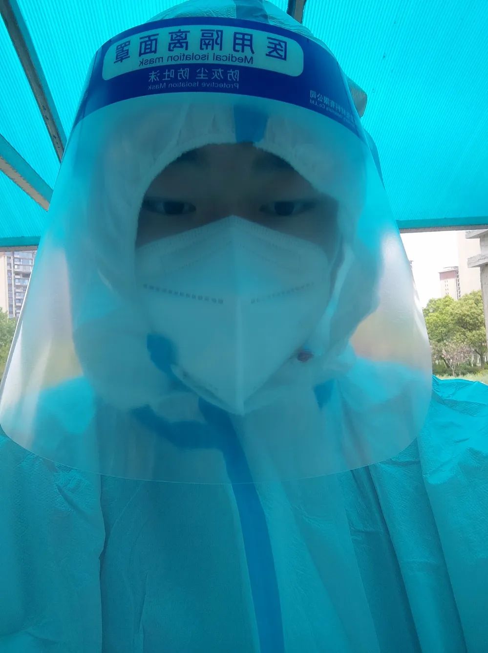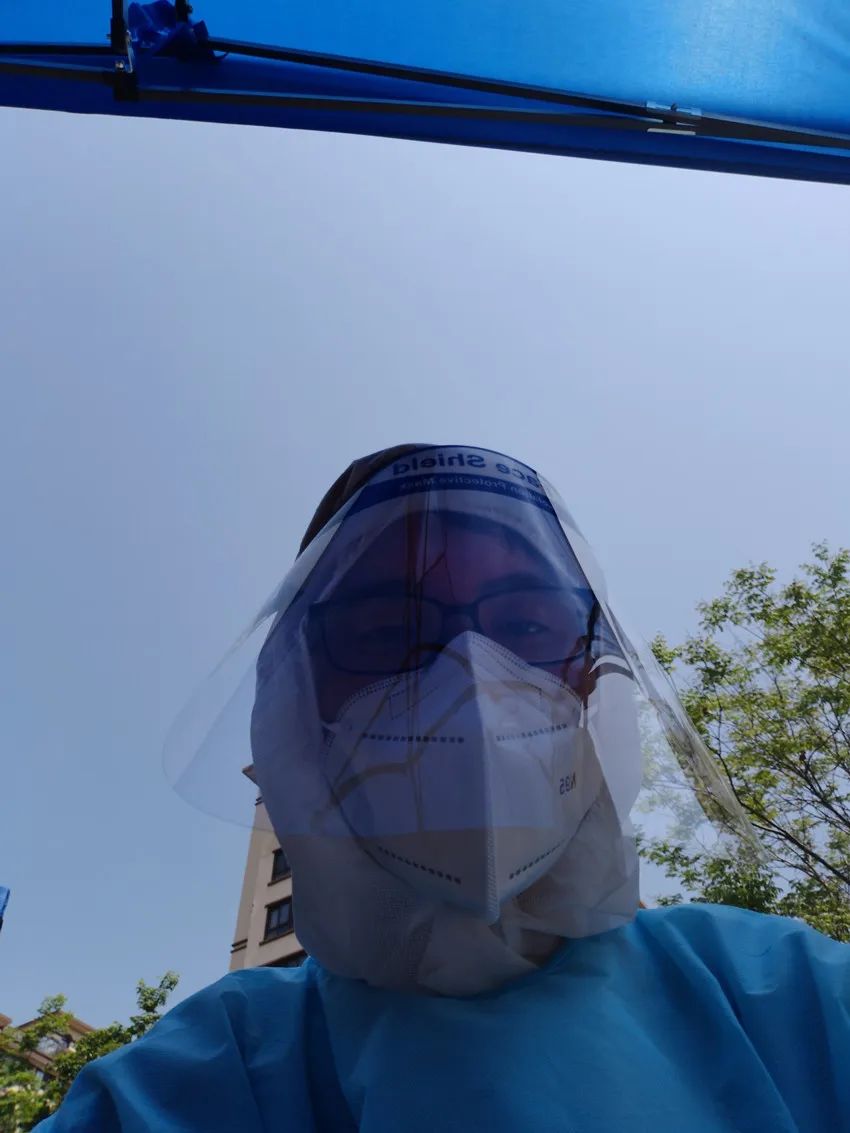 7:00,核酸检测正式开始!因为大家都是第一次开展全民核酸检测采样工作,采样过程中难免遇到各种突发状况,例如防护物资缺少、部分居民不会扫码信息登记、信息采集员账号未授权、插队导致混检人数错误……但是在大伙的齐心协力帮助下,我们克服重重困难,用最快的速度完成了小区全体居民的核酸采样工作,并在完成当天的集中核酸采样工作任务后,及时开展上门服务为老弱病残孕进行核酸检测。烈日炎炎,防护服中浸透了汗水,忙碌到下午2点,为了不影响工作进度,我们轮流进餐。随后一直坚持到晚上7点,在同物业工作人员反复确认没有未下楼检测的居民后,我们终于松了一口气,结束了忙碌充实的一天。